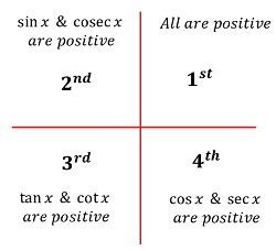 - Sign of ratio ( \pm ) will depend upon the position of the angle in the quadrant as shown in figure.